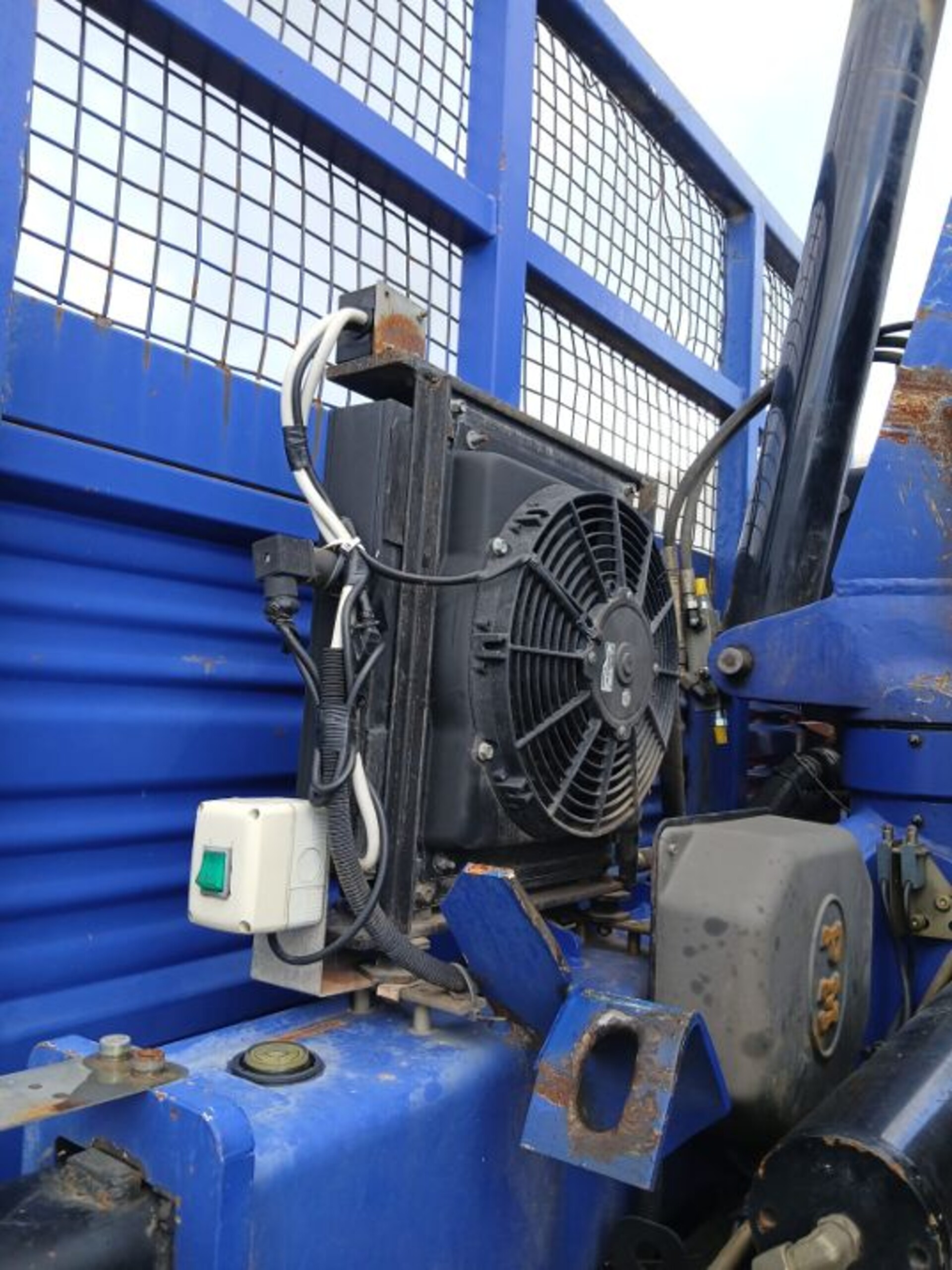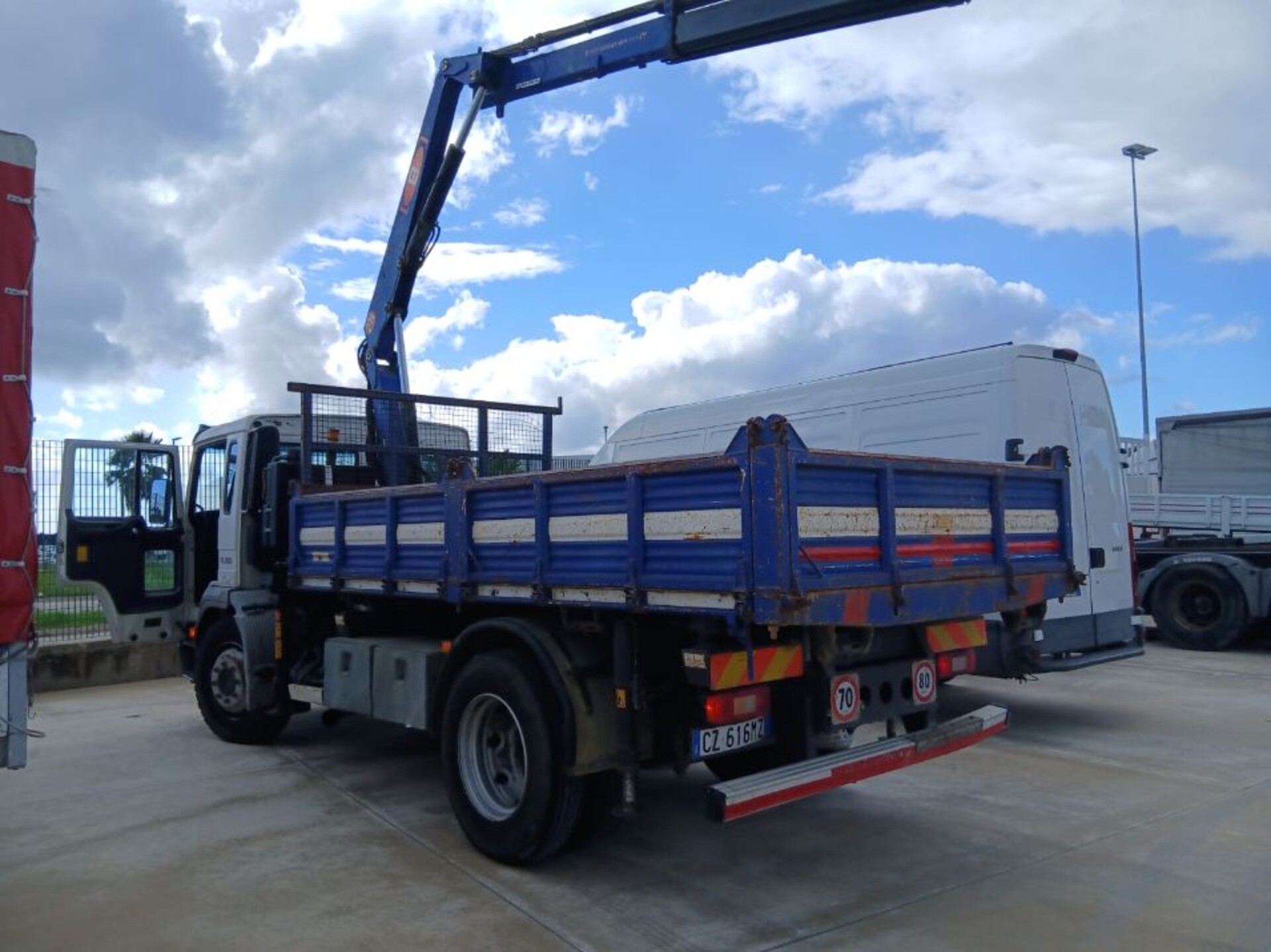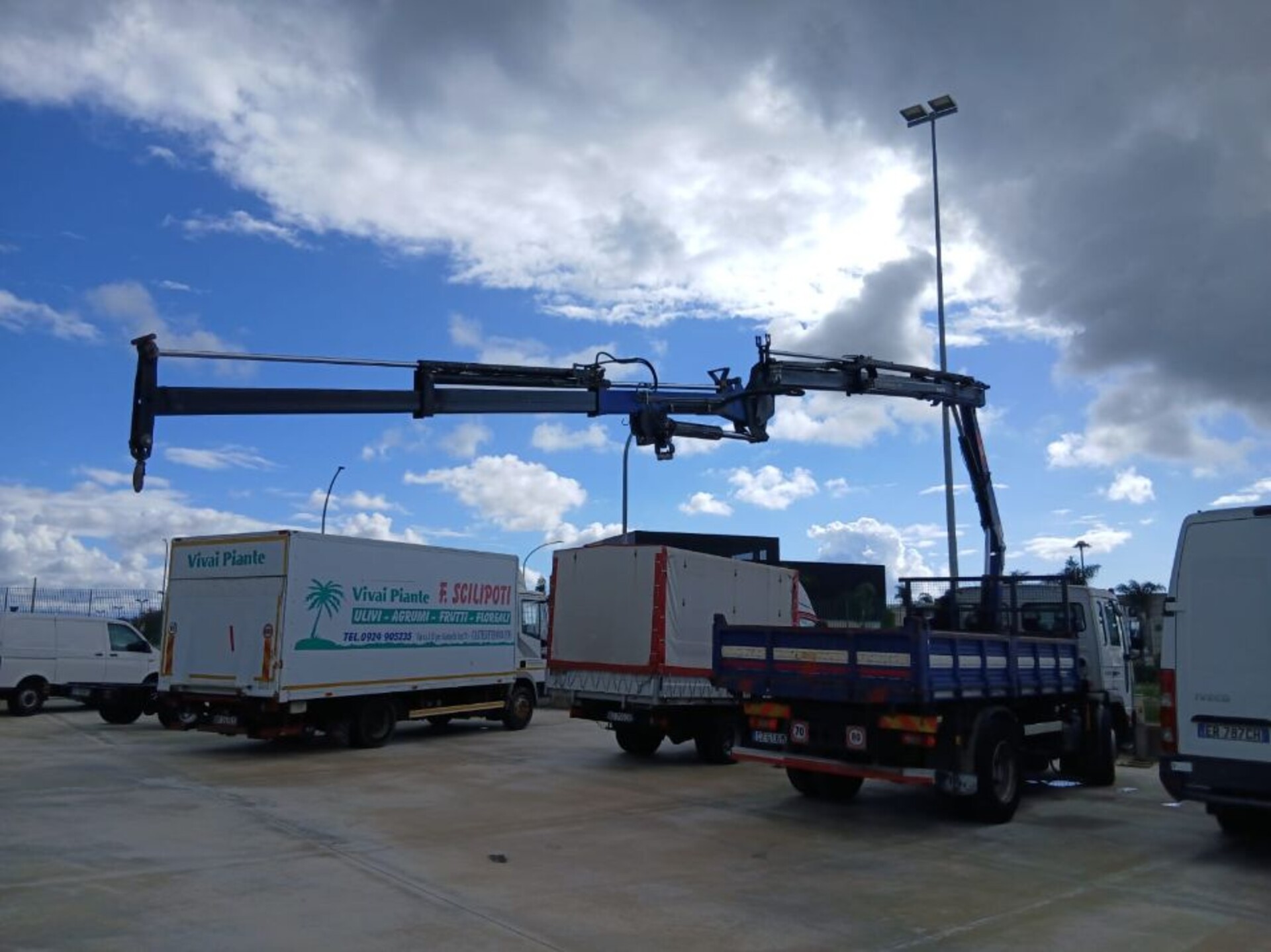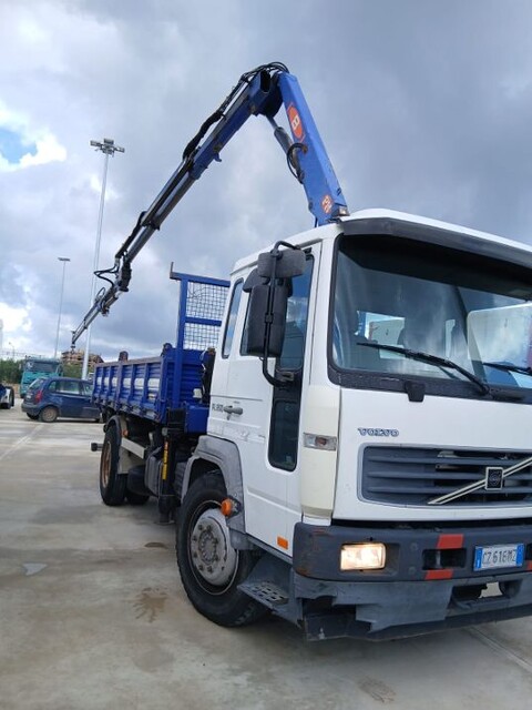 VOLVO MODELLO FL6 ALLESTIMENTO CON CASSONE RIBALTABILE E GRU DIETRO CABINA MARCA PM 8000 CON 4 SFILI 2+2 CON ANTENNINO.